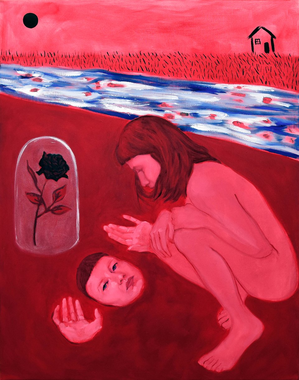 A rose, a house and a river beneath the river, 2023/ 75x95cm/ oil on canvas