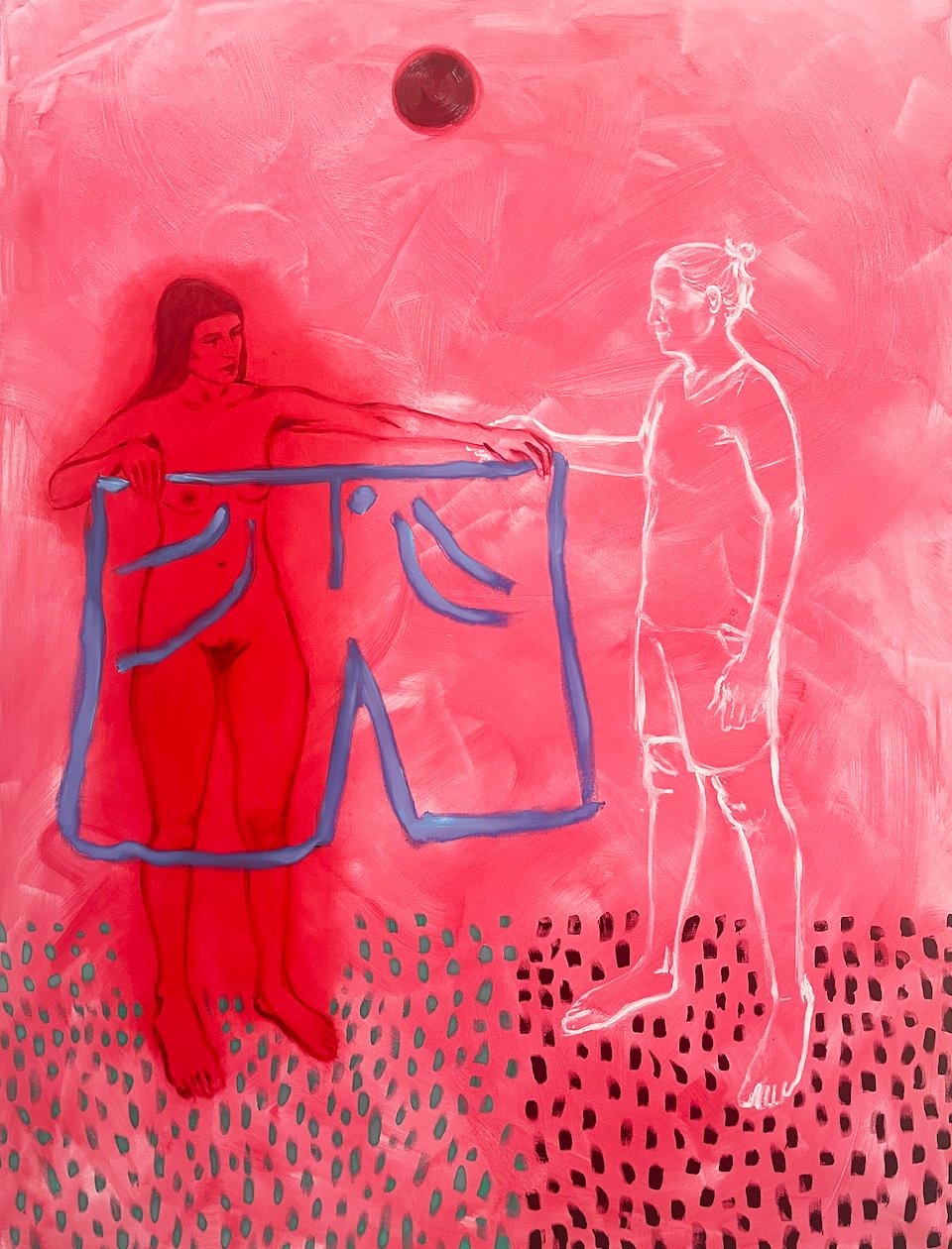 She was now too small for the shorts she once wore tightly/ Oil on canvas/ 125x95cm